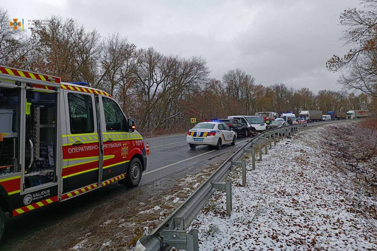 Авария произошла на трассе "Стрый – Кировоград – Знаменка". Авто "Форд Мондео" с 39-летним водителем столкнулось с "Опелем Виваро", за рулем которого был 35-летний мужчина. От удара "Опель" развернуло и в него врезалась "Тойота" с 36-летним водителем за рулем.