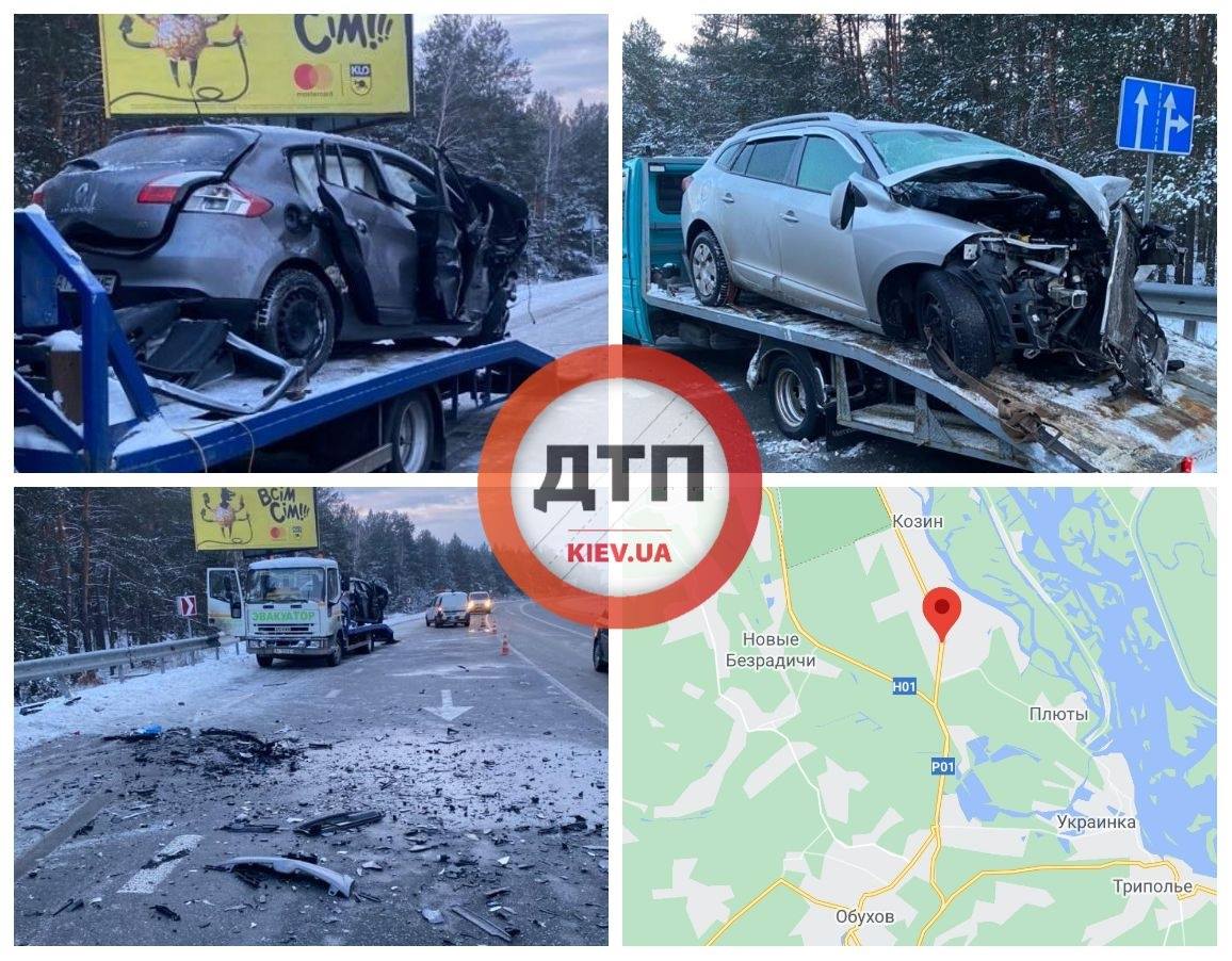 В Киевской области на выезде из Козина на Обухов произошла жесткая лобовая авария.