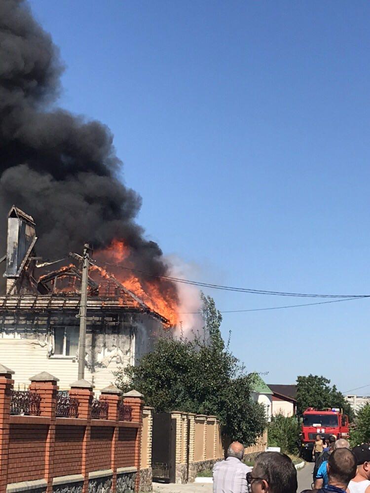 В ГСЧС рассказали, что горел второй этаж и крыша жилого дома на общей площади 170 кв.м. Кроме того огнем была охвачена крыша третьего этажа отдельно стоящего здания на общей площади 30 кв.м.