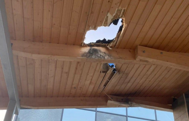 По предварительным данным, повреждено 7-9 стеклянных панелей самого здания и беседки, которые стоят у здания, на одной из беседок на крыше застрял снаряд из РПГ, он не разорвался.