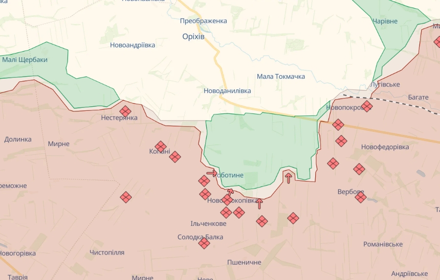 На Новопавловском направлении силы обороны продолжают сдерживать врага в районах населенных пунктов Красногоровка, Георгиевка, Победа, Новомихайловка, где враг 30 раз пытался прорвать оборону наших войск.