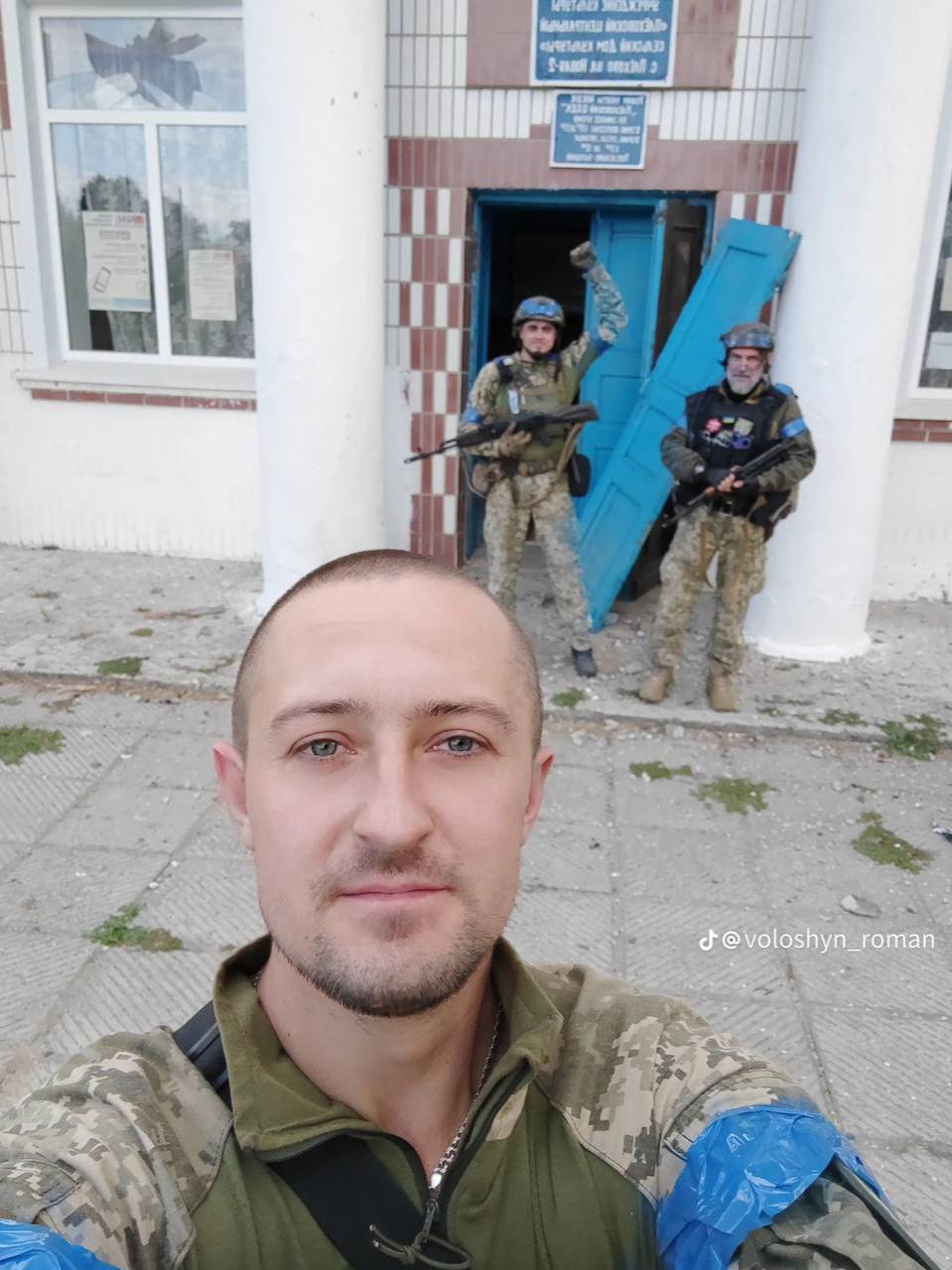 Военный Роман Волошин опубликовал эти кадры на своей странице 13 августа. На фото можно заметить, как военнослужащие стоят возле дома культуры села Плехово, бойцы также успели поднять украинский флаг.