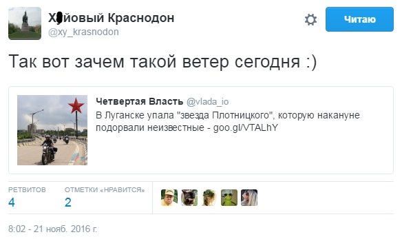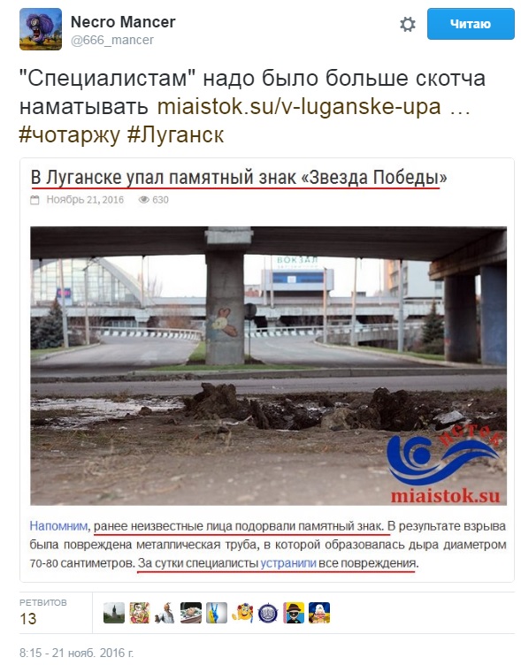 Как сообщал "Апостроф", луганский блогер с ником Савелий Вассерман предположил, что подрыв "Звезды победы" является результатом противостояния местных группировок.