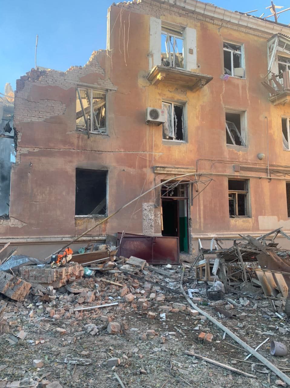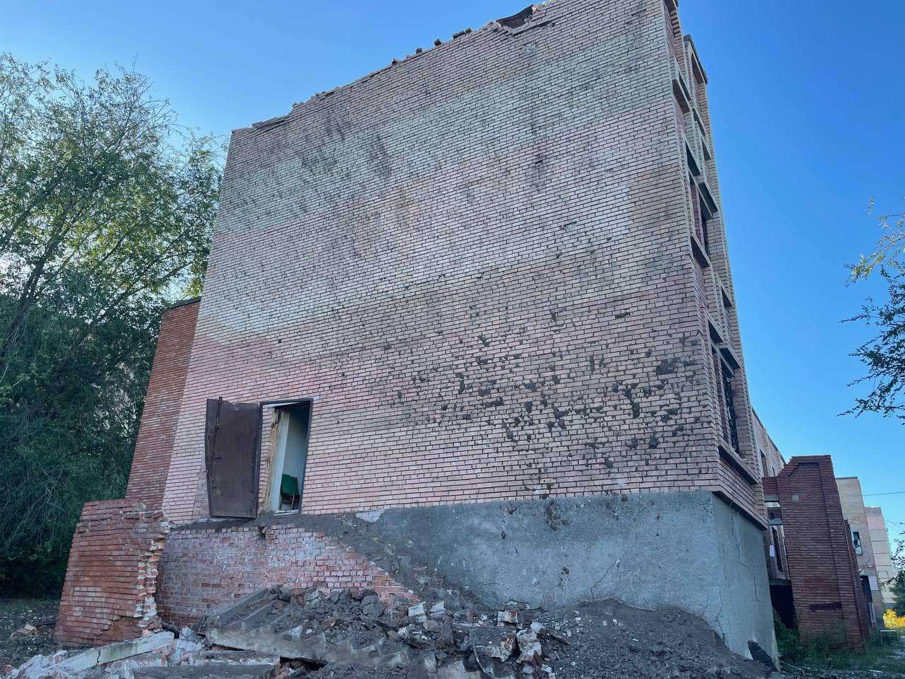 "Одно из попаданий произошло в микрорайоне Черевковка. Пострадала школа №4. К счастью, обошлось без жертв. А вот вторым попаданием в доме №43 на улице Торской полностью разрушен один из подъездов. Взрывной волной повреждены и соседние здания", - сказал начальник военной администрации Славянская Вадим Лях.