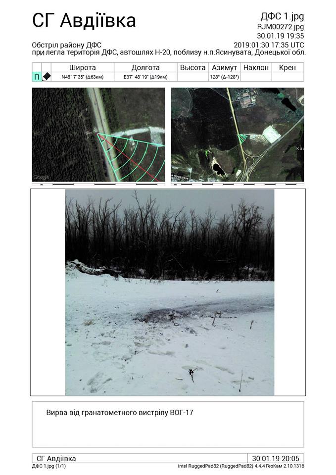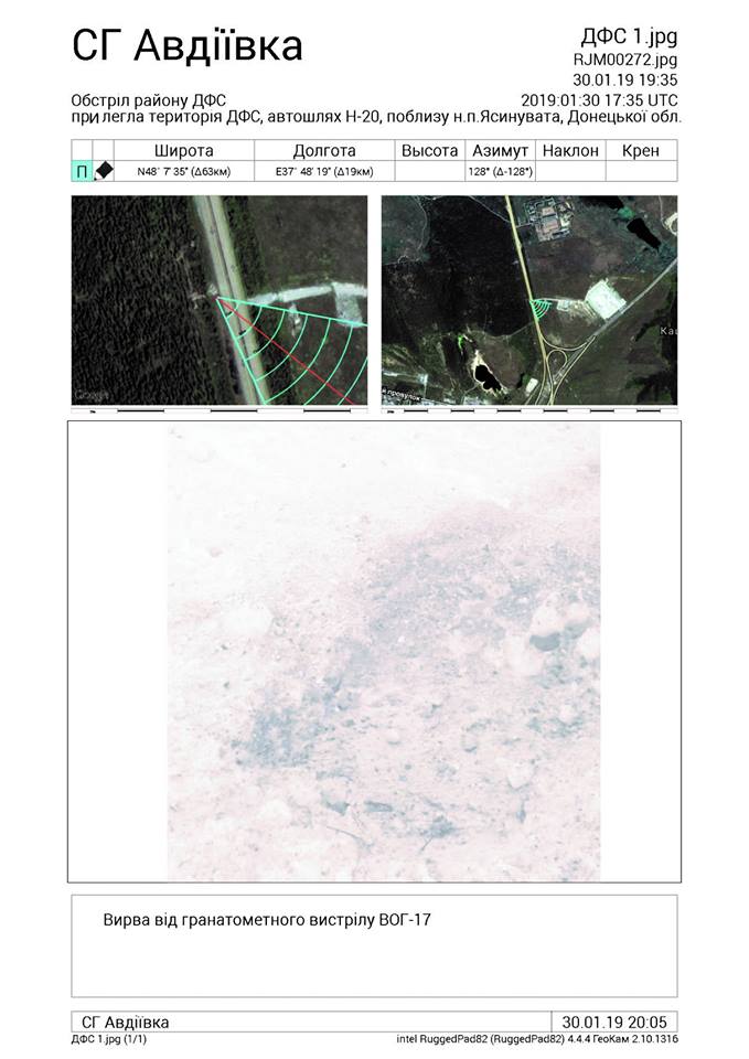 Установлено, что обстрел из гранатомета АГС-17 велся оккупантами с направления так называемой Ясиноватской развязки, прилегающей к Донецкой фильтровальной станции, которая в настоящее время находится под временным контролем российско-оккупационных войск", – сообщили в штабе.