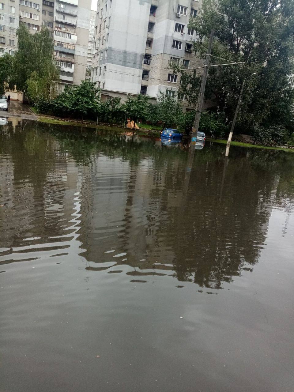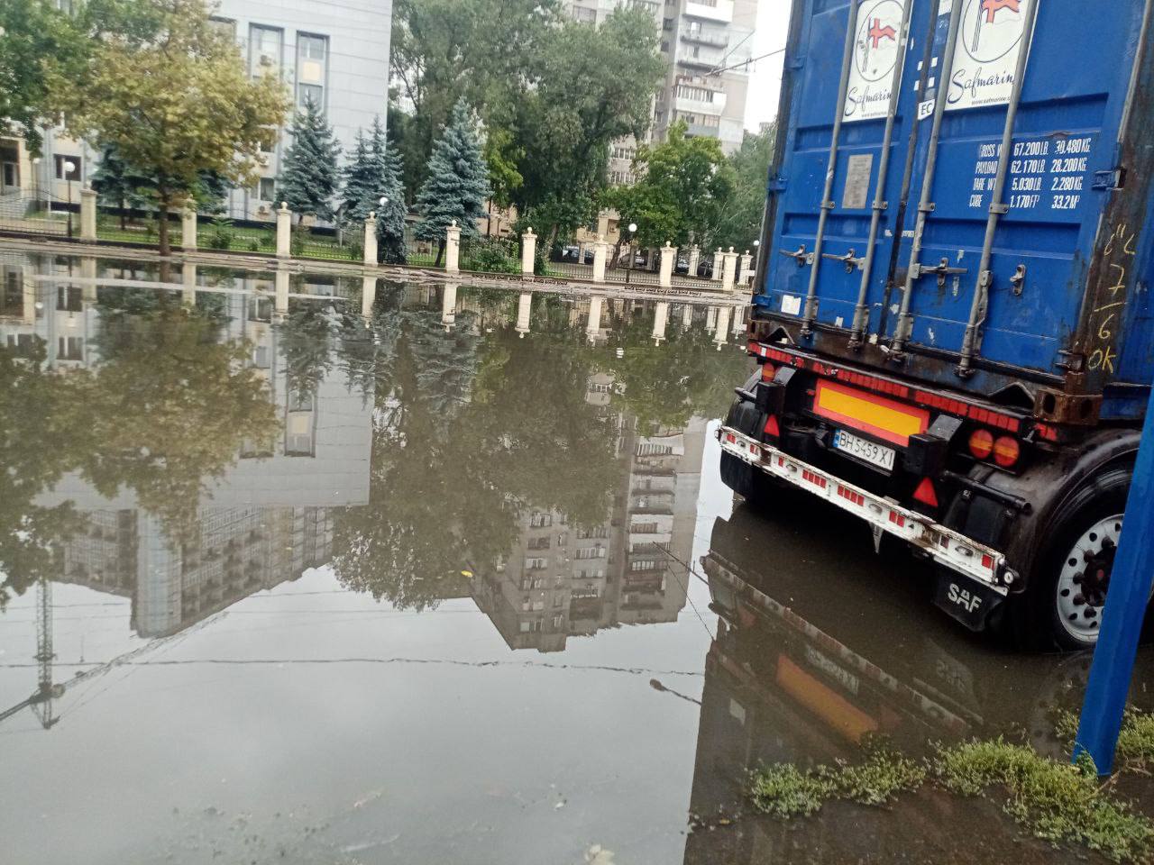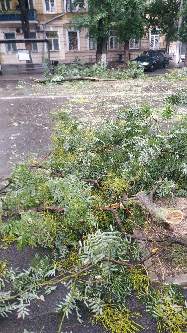 Дорогу так затопило, что водители ездят по тротуарам, где уровень воды чуть меньше. По данным очевидцев, затопило Французский бульвар, а также жилой массив имени Таирова, где вода просочилась в салон машин, которые припаркованы на стоянках. Помимо подтопленных улиц, повалило деревья.