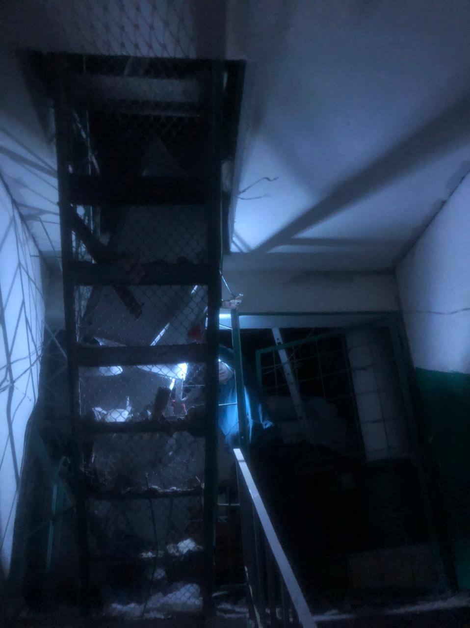 В обоих домах разрушены крыши, верхние этажи жилых домов, лестничные клетки.