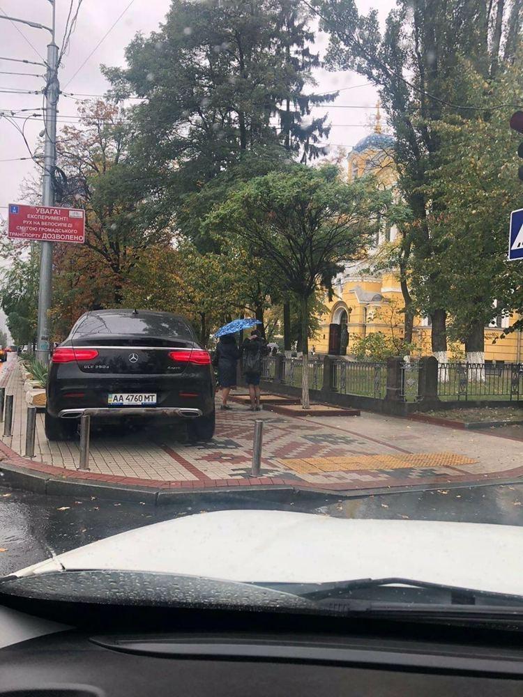 В Киеве наглый водитель Mercedes поставил свое транспортное средство в неположенном для этого месте и стал "героем" сети.