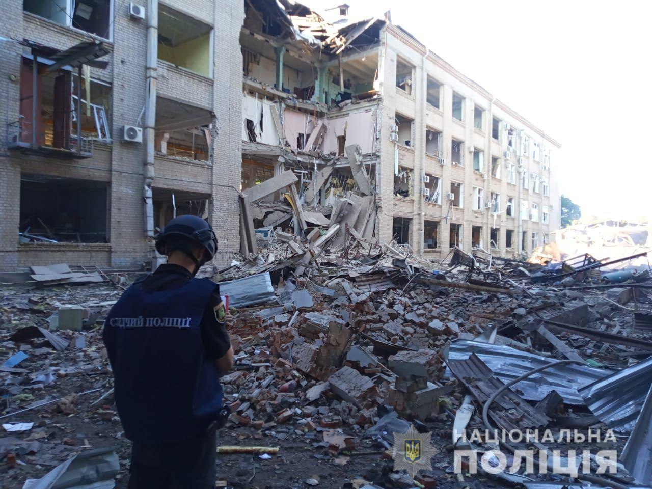 В результате прилета российских снарядов, повреждены стеклопакеты и фасад, возник пожар на территории постройки. Количество пострадавших на данный момент еще уточняется.