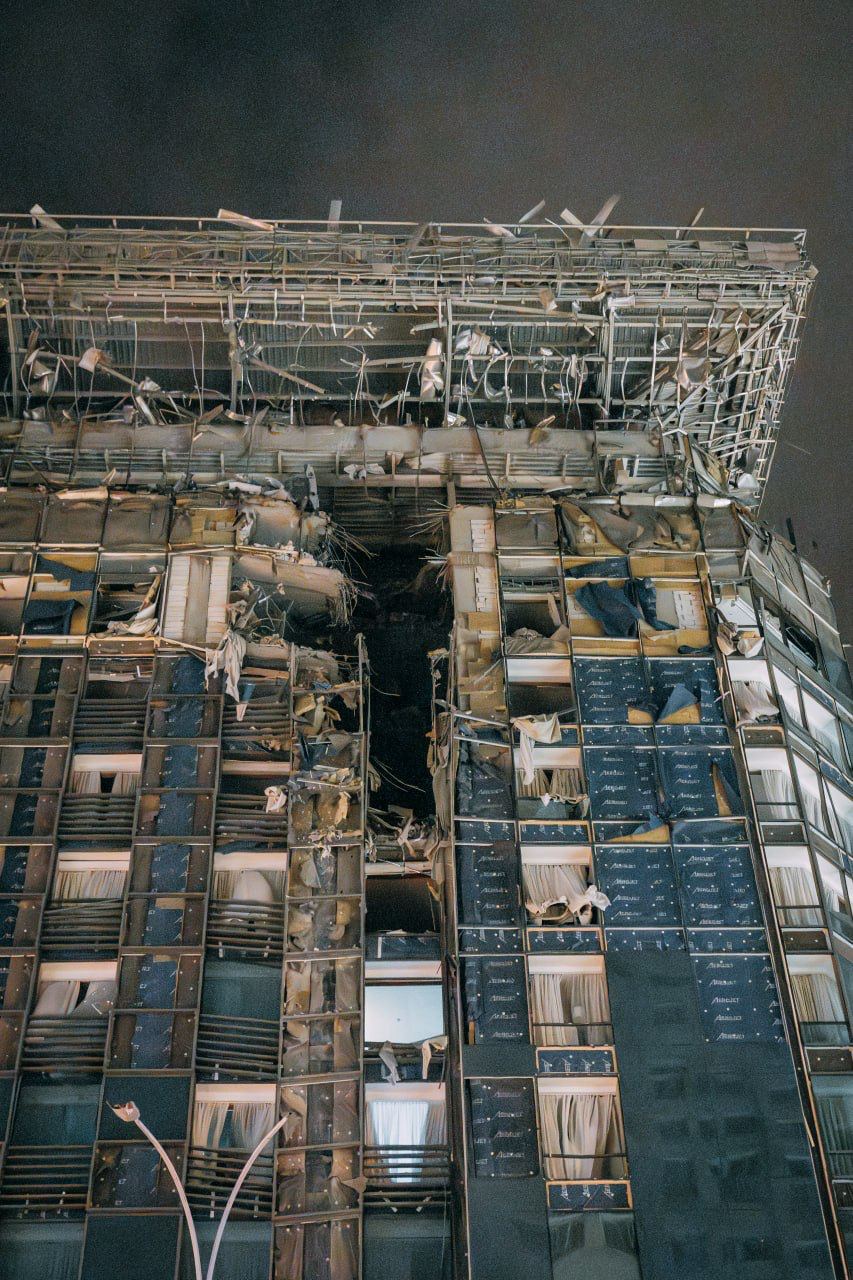 Как стало известно, попадание в Kharkiv Palace пришлось на 12 этаж. После первых ударов люди успели спуститься в укрытие, поэтому ранения получили только два человека.