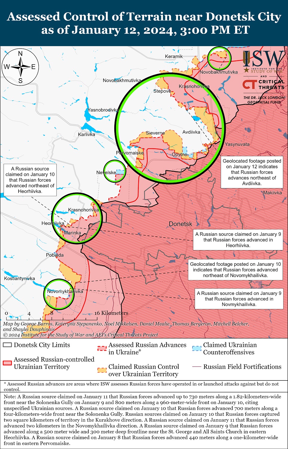 Российские войска добились незначительного успеха к северо-западу от Авдеевки и продвинулись восточнее Авдеевского коксохимического завода на северо-западе Авдеевки.