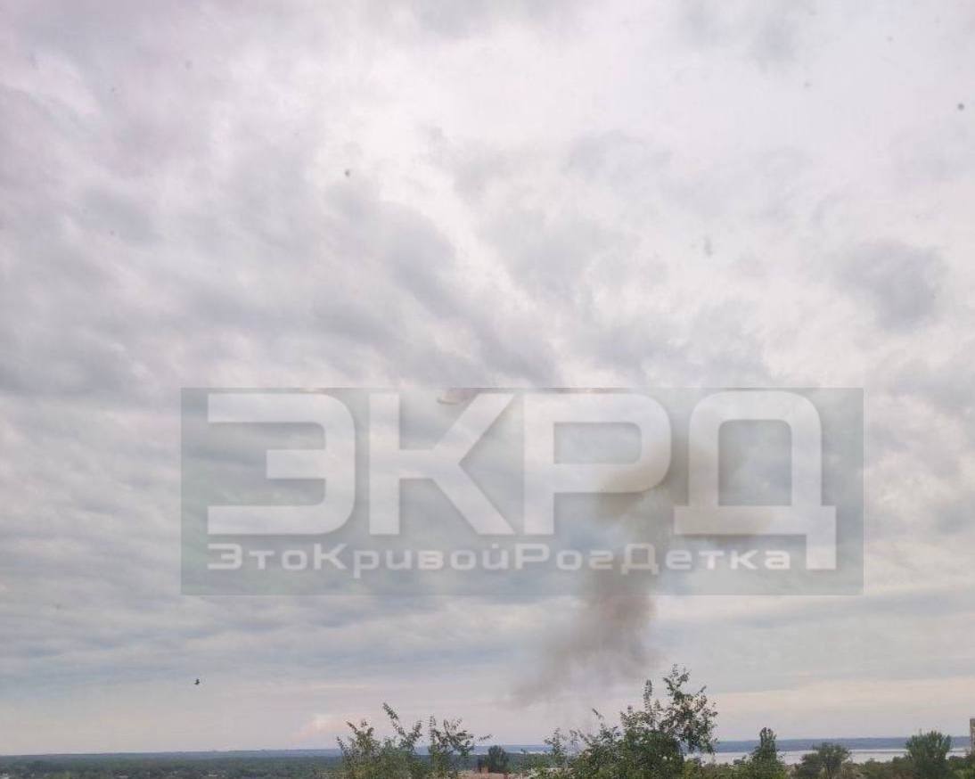 На месте прилета в небо поднимается густой столб белого дыма. Также звуки взрывов во время тревоги слышали в Днепре, это сработало ПВО в пригороде.