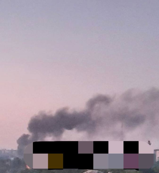 На месте начался сильный пожар, над городом поднялись клубы густого черного дыма. Как пишут очевидцы, "прилета" не было, причина возгорания - падение обломков.