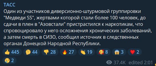 Российские оккупанты, вероятно, убили украинского бойца из подразделения "Медведи", который находился в СИЗО в так называемой "ДНР" после попадения в плен из "Азовстали" в Мариуполе.