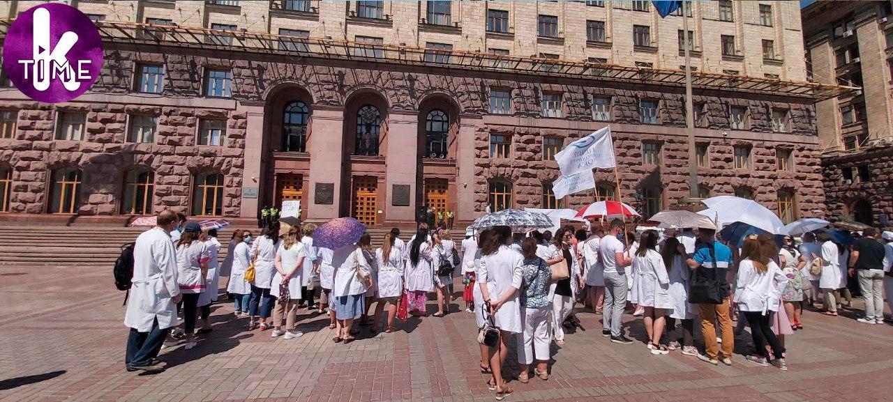 Под стенами Киевской мэрии вот уже второй день протестуют медики, которые выдвигают властям ряд требований.