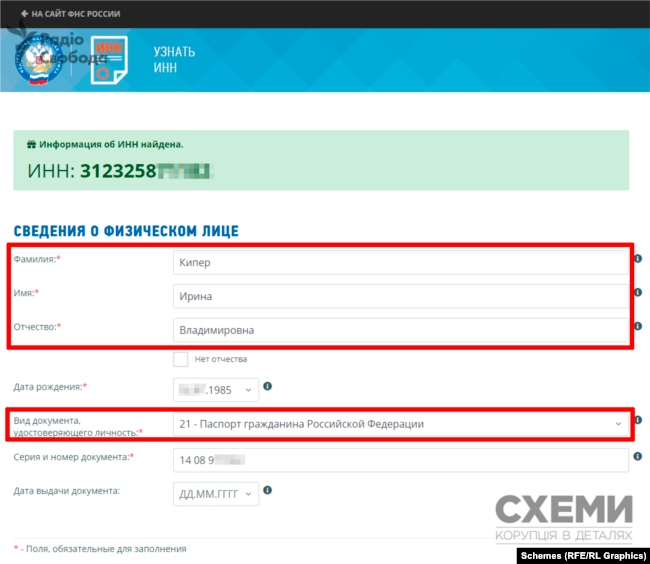 Однако журналисты обнаружили, что российский паспорт у жены киевского прокурора до сих пор не аннулирован. На официальном сервисе МВД России паспорт Ирины Кипер не числится среди недействительных. К тому же на официальном сайте Федеральной налоговой службы России нашелся индивидуальный номер налогоплательщика супруги прокурора.
