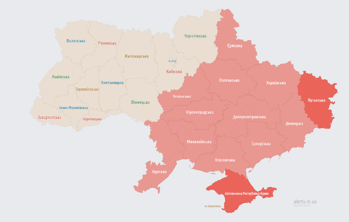 Предварительно сигнал тревоги был объявлен из-за возможных запусков ракет "Калибр" из акватории Черного моря. Поэтому воздушная тревога объявлена в восточных, южных и центральных областях Украины.