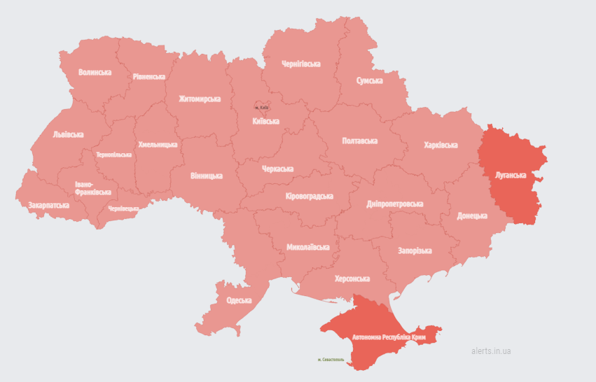 Как свидетельствует карта тревог, под угрозой ракетного удара находится вся территория Украины.