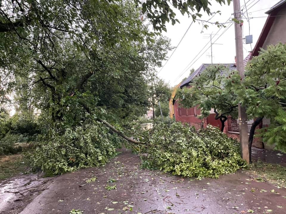 "Во второй половине дня Закарпатьем пронесся ураган с грозой и ливнями. Стихия продолжалась относительно недолго, но наделала беды. По словам местного жителя Сергея Комзея, на улице Кинижи в Берегово дождь повалил несколько деревьев. Движение перекрыто", - говорится в сообщении.