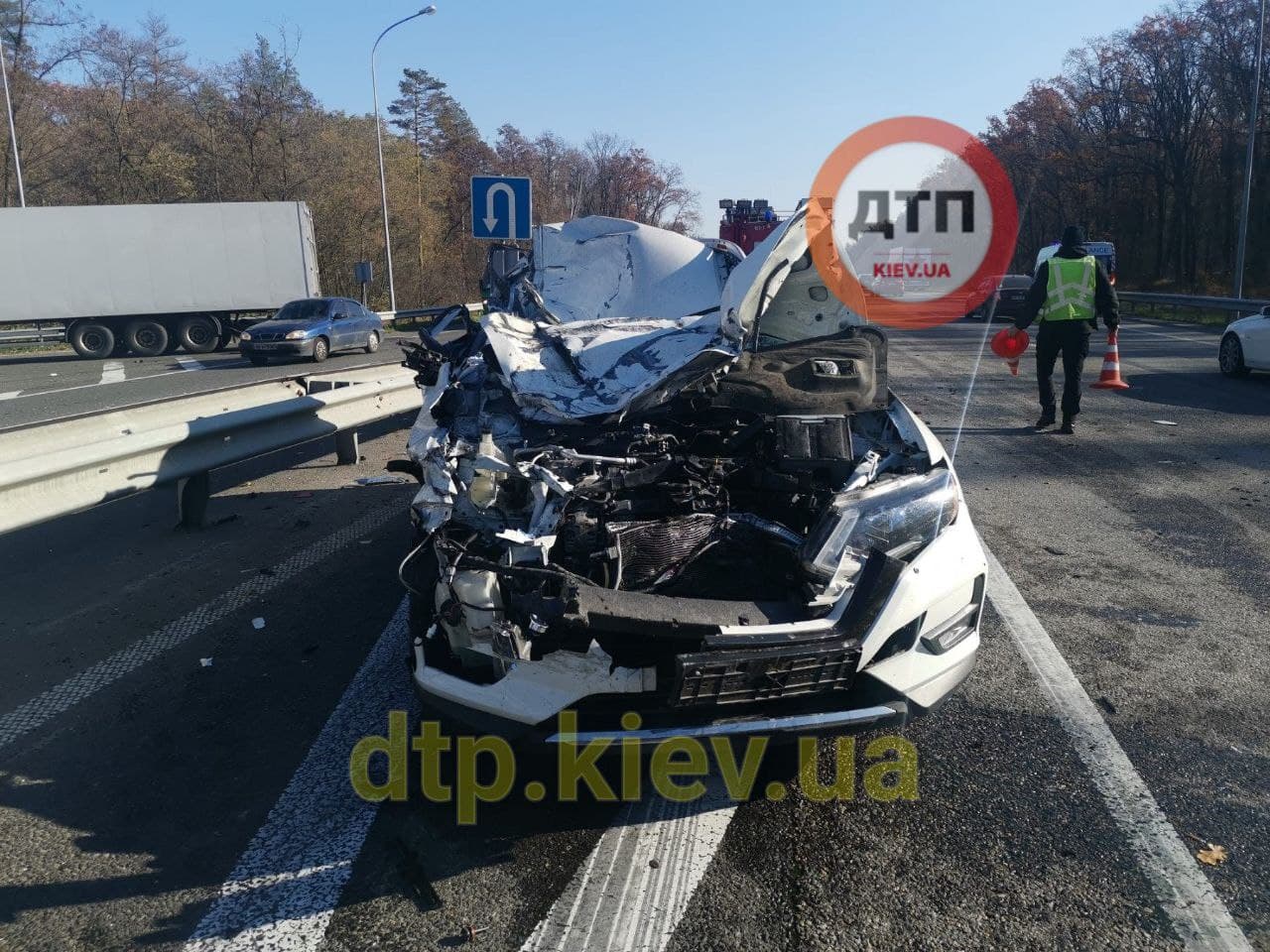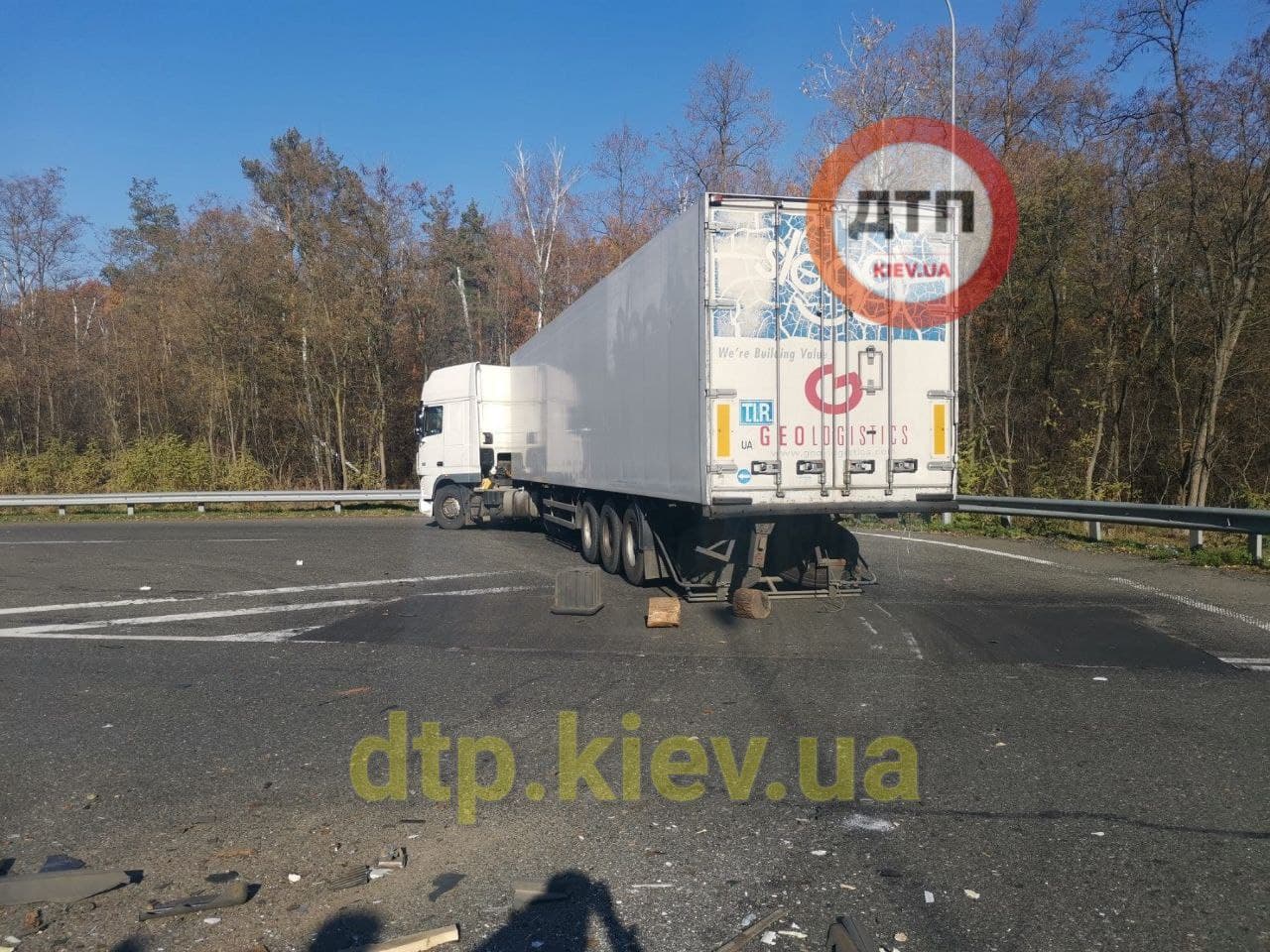 На Харьковской трассе под Киевом случилось серьезное ДТП с участием легковушки и грузовика.