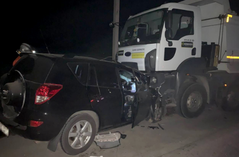 Здесь произошло лобовое столкновение автомобиля Toyota RAV4 и специализированного грузового самосвала Ford Cargo 4142D.