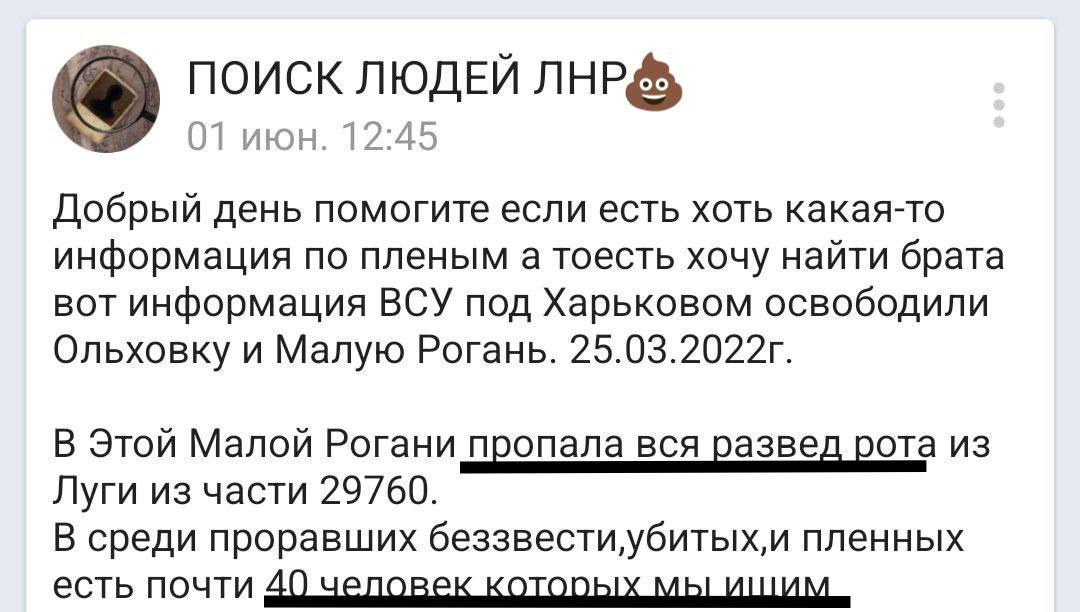 Они указывают, что связь с оккупантами исчезла после того, как ВСУ освободили Ольховку и Малую Рогань. Именно там и пропали "разведчики". Разыскивают около 40 человек.