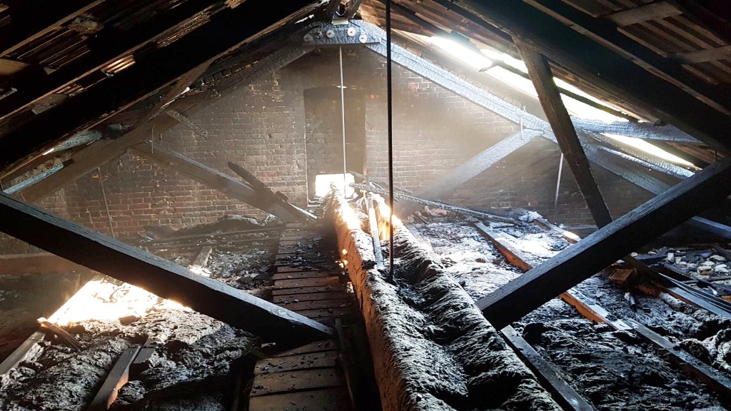 Костел находится в 100 м от подразделения пожарно-спасательной части. Пожарные заметили дым в здании двухэтажного кирпичного храма. Он шел из-под части крыши и окна на втором этаже, где находилось подсобное помещение. Работник храма пытался потушить пожар огнетушителем, но у него это не получалось.