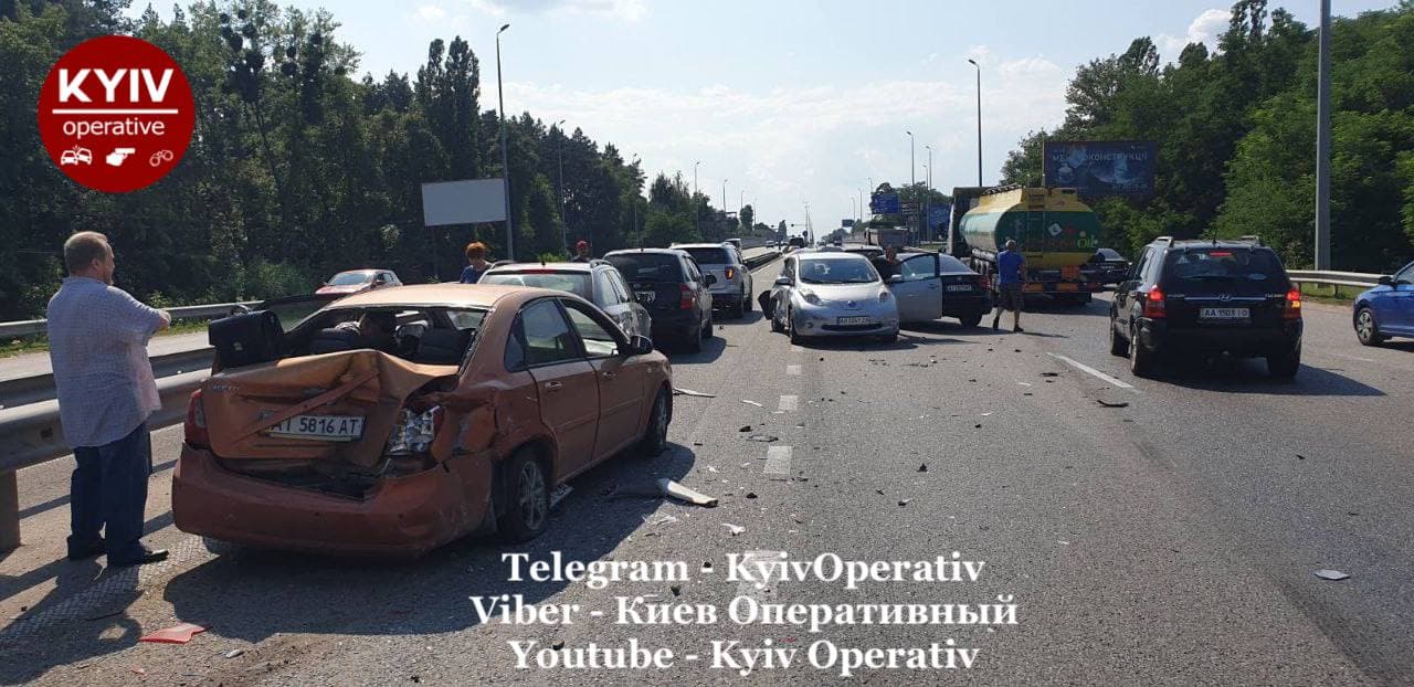 В понедельник, 26 июля, на Житомирской трассе (в 5-ти км от Киева) в аварию попали сразу пять автомобилей.
