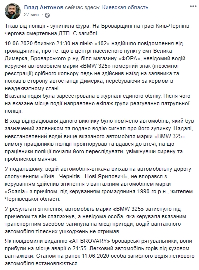 Как сообщал "Апостроф", 10 июня на Харьковской трассе недалеко от Борисполя произошла смертельная ДТП, водитель Amulet на полном ходу въехал в заднюю часть грузовика.