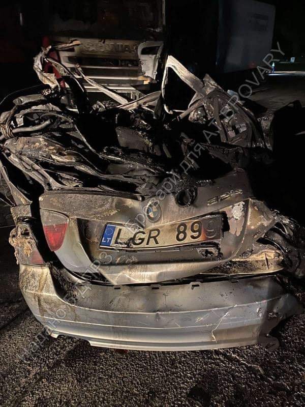 В результате столкновения "BMW" зажало под прицепом и он вспыхнул, а его водитель погиб на месте происшествия, водитель грузового автомобиля телесных повреждений не получил.