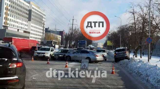 Утром в понедельник, 15 февраля, в городе Вишневое под Киевом произошла авария с участием пяти машин.