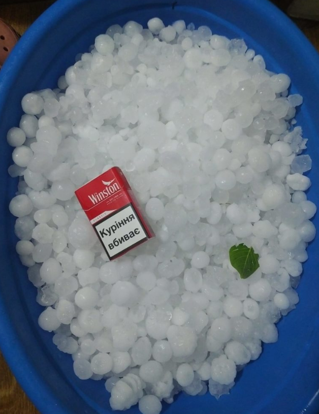 Во вторник, 7 июля, в Одесской области выпал град. Размер некоторых градин достигал размера перепелиного яйца до 4 см в диаметре.