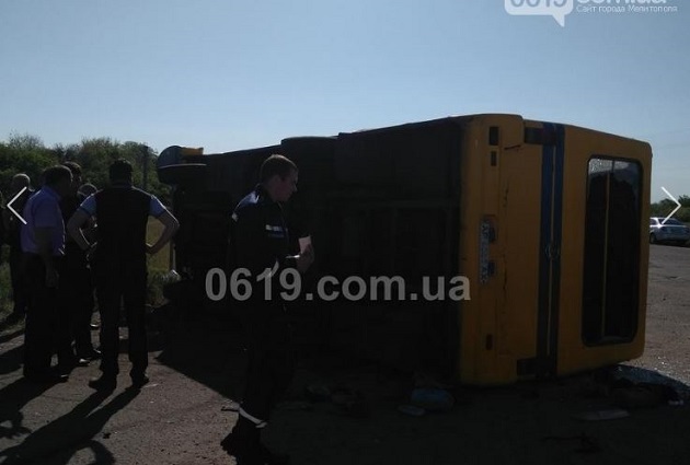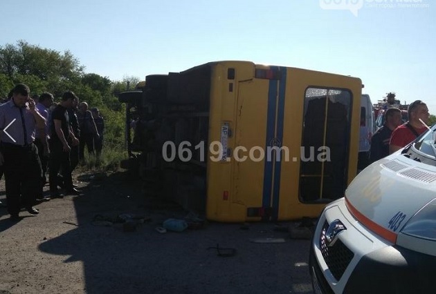 По данным сайта 0619.com.ua, который ссылается на очевидцев, перед микроавтобусом на знаке "Стоп" остановилась фура. Водитель пошел на обгон и на высокой скорости врезался в пассажирский автобус. Из-за столкновения автобус перевернулся. Судя по фото с места происшествия, микроавтобус поврежден не сильно.