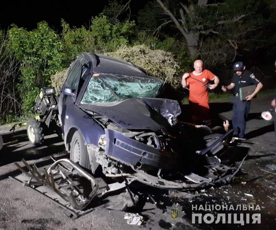 По предварительной информации, 45-летний водитель автомобиля Volkswagen, житель Винницкой области, при объезде мотоблока с прицепом, загруженным сеном, который двигался в попутном с ним направлении, выехал на полосу встречного движения. Там он влетел в Suzuki, которым управлял 53-летний житель Киевской области.