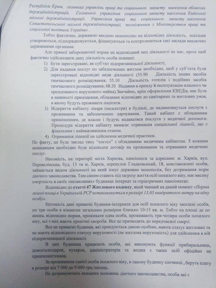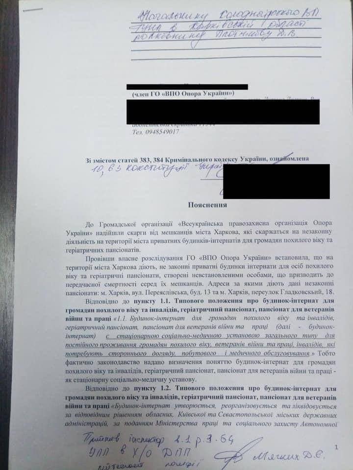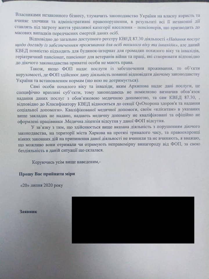 О существовании незаконного дома престарелых было подано в полицию еще в июле 2020 года, но на него никто не обратил внимания. В сети опубликовали соответствующий документ.