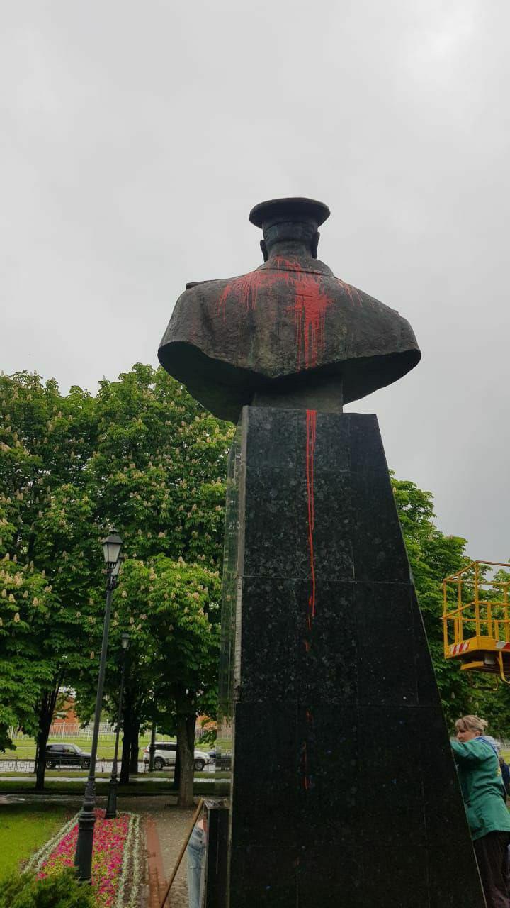 Отметим, памятник был облит краской и днем ранее. Его отмыли коммунальщики, они потратили на это несколько часов.