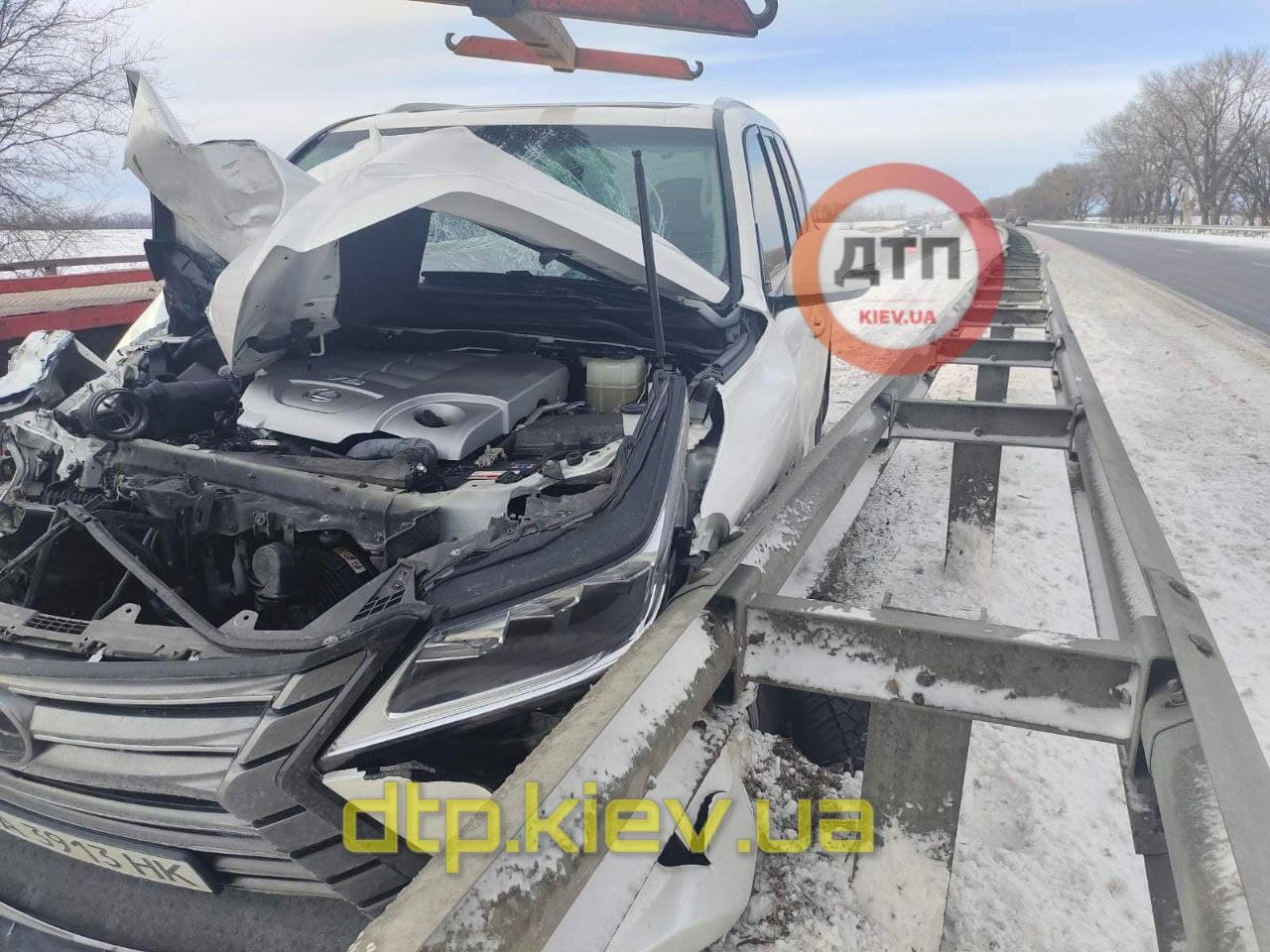 В Полтавской области произошло элитное дорожно-транспортное происшествие. Автомобиль марки Lexus из-за снега и гололеда на дороге въехал в отбойник.