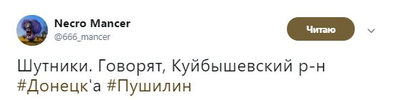 "Шутники. Говорят, Куйбышевский р-н Донецка. Пушилин", - говорится в сообщении.