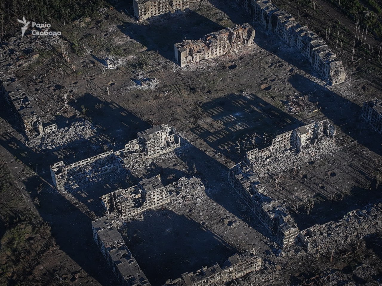 "Кадры передает корреспондент Радио Свобода. Микрорайон расположен по каналу, в сторону Бахмута. Между тем, обстрелы населенного пункта не прекращаются", – сообщает издание.