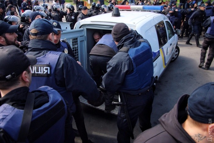 Правоохранители также задержали одного человека от "куликовцев". При себе у одного из задержанных нашли дымовые шашки и газовый баллончик.