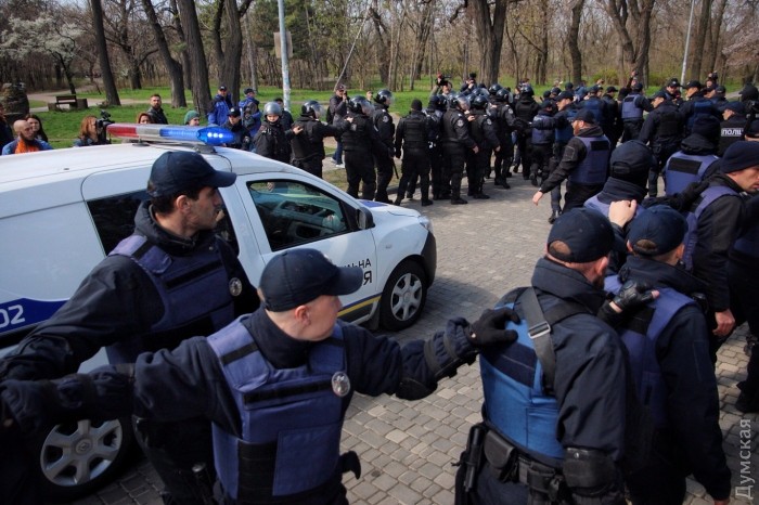 "После возложения цветов на Аллее Славы представители общественных организаций пытались спровоцировать конфликт во время проведения культурно-массовых мероприятий. Благодаря оперативным действиям полиции и принятым мерам, конфликт локализован. По состоянию на 13 часов грубых нарушений публичной безопасности и порядка не допущено", - сказал начальник управления превентивной деятельности ГУНП Иван Ищенко.