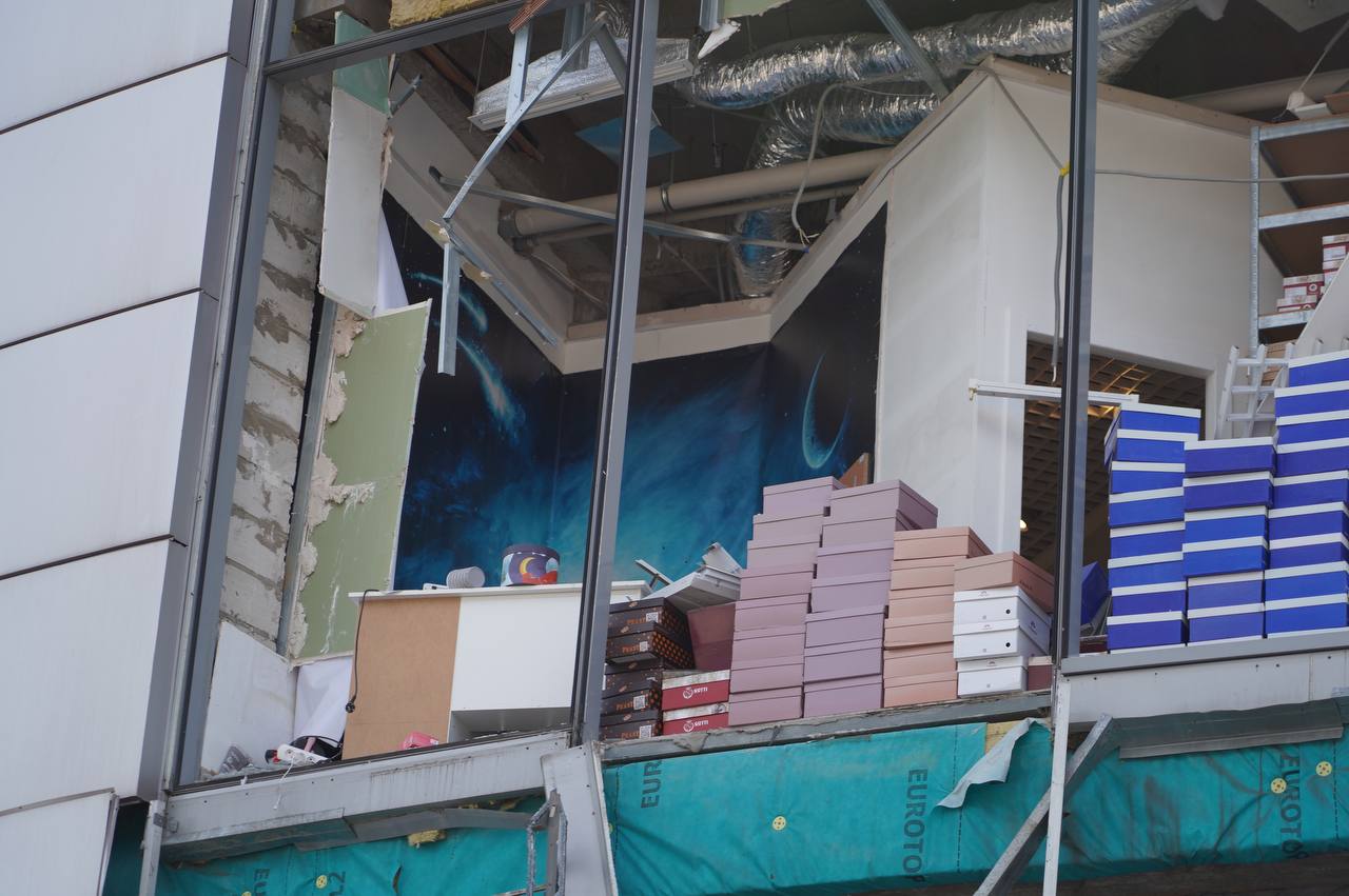 В сети появились фото последствий массированной атаки россиян Днепра ракетами и БПЛА, в частности местного торгового центра.