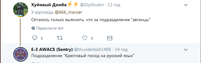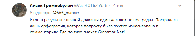 "Итог: в результате пьяной драки ни один человек не пострадал. Пострадала лишь орфография, которая попросту была жестко изнасилована в комментариях. Где-то тихо плачет Grammar Nazi...", "Всегда удивлялась "защитникам русского языка" от биндеровцев, которые этого русского не знают. Шо они защищать собирались???", "Все смешались в кучу, авганцы, чиченцы, и козаки)", "Осталось только выяснить, что за подразделение "авганцы"", - пишут комментаторы.