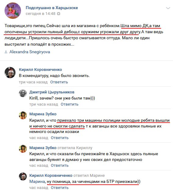 В групе ВКонтакте "Подслушано в Харцызске" жители затеяли спор: кто с кем устроил разборки. Некоторые из них свалили всю вину на пьяных "авганцев".