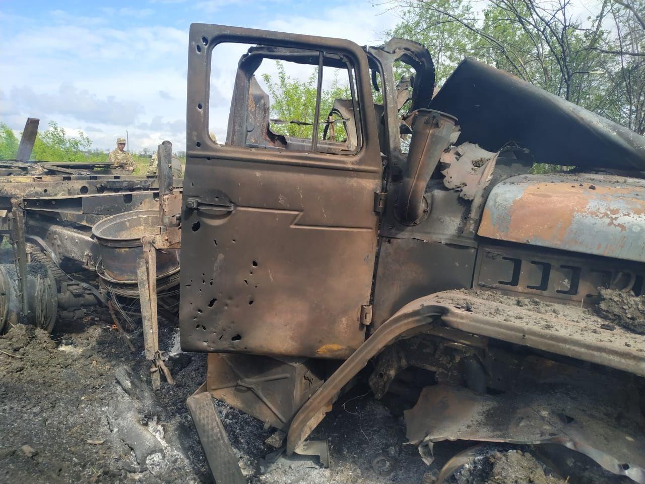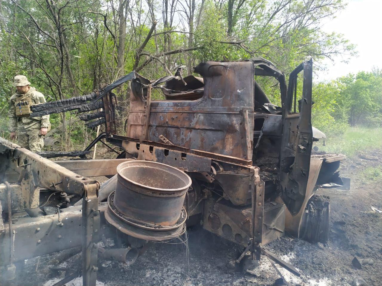 Военный журналист Андрей Цаплиенко показал фото грузовика ВСУ, подорванного боевиками на Донбассе.