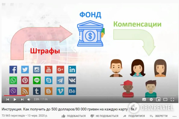 Так, мошенники опубликовали на Youtube видеоролики, в которых сообщили, что в США якобы была учреждена организация, которая занимается выплатой компенсаций за утечки информации из соцсетей и мессенджеров.