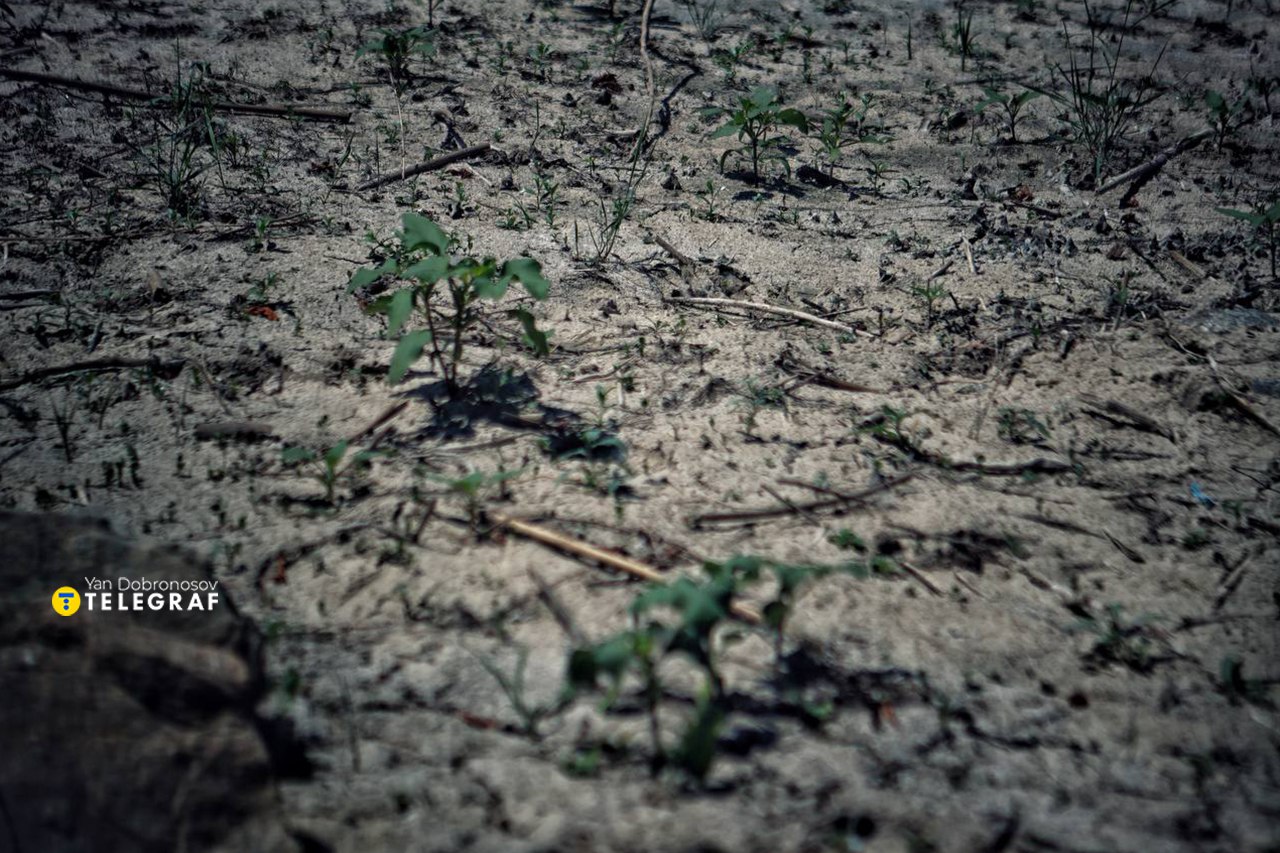 После российского теракта на Каховской ГЭС в ночь на 6 июня, Каховское водохранилище довольно быстро опустошилось, однако через месяц после катастрофы там еще остаются небольшие озерца, а это место начинает постепенно зеленеть.