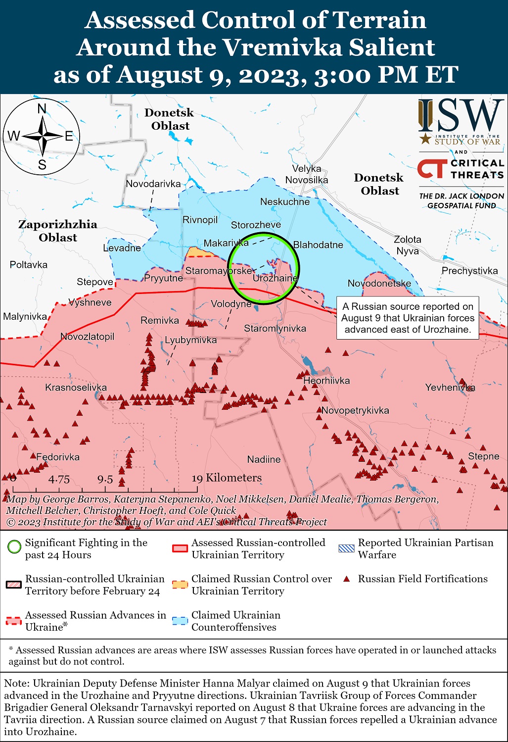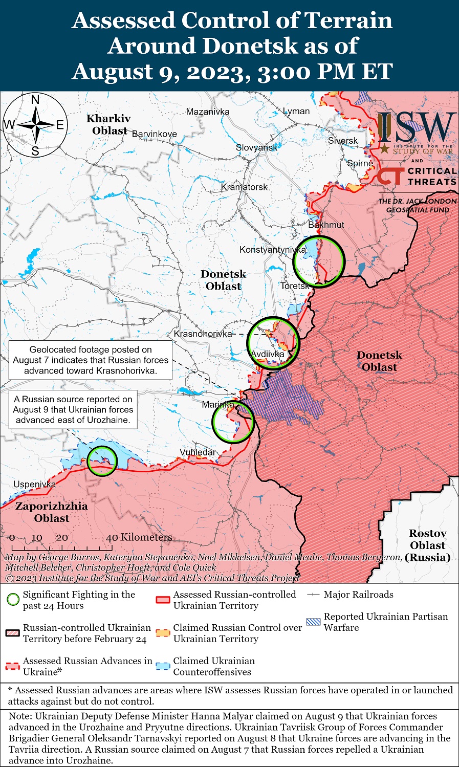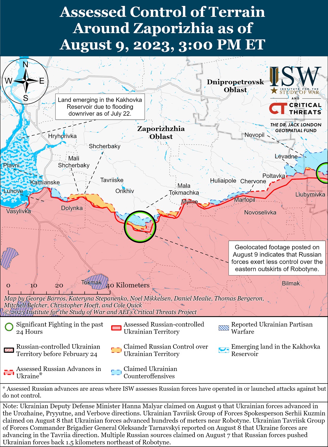 Украинская атака у Казачьих Лагерей на восточном (левом) берегу Херсонской области 8 августа, вероятно, была ограниченным рейдом. Генштаб ВСУ и украинские военные не подтверждают информацию о переходе украинских сил через Днепр.