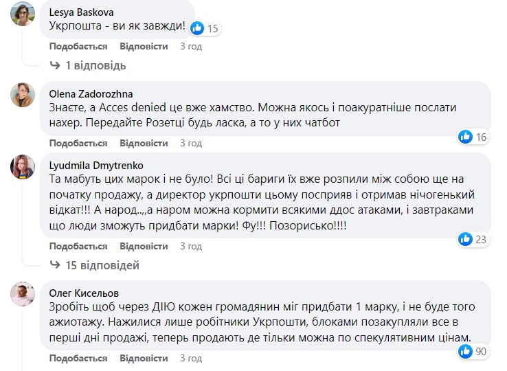 Об этом свидетельствуют возмущенные комментарии под постом "Укрпошты" в Facebook.