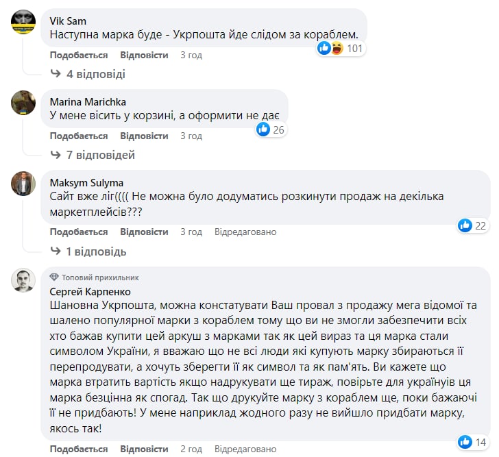 Разгневанные украинцы послали "Укрпошту" вслед за российским военным кораблем после провала продаж знаменитой марки на ROZETKA. Практически никому не удалось ее купить из-за того, что сайт просто "лег", а когда заработал, то марок уже не было в продаже.